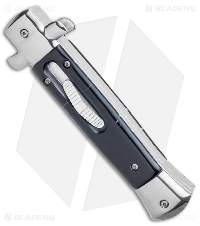 Pick up a unique and collectible design with the 9″ Italian Stiletto OTF (out the front) automatic knife. This OTF model is built with an acrylic black handle and a polish finished blade. It features classic Italian made craftsmanship and a dependable double-action OTF mechanism. Item includes a nylon sheath for secure belt carry.