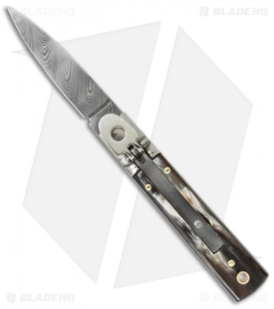 This 6″ Italian Stiletto from AKC comes in the Lever Lock style with a Brazilian horn handle and a damascus blade. AKC specializes in collectible Italian stilettos made with traditional knife-making techniques. This 6″ Lever Lock model has a Brazilian horn handle with a sturdy stainless steel liner. Brass pins add a classic finishing touch to the design. The damascus blade comes in a drop point style with a plain edge. Add classic Italian style to your collection with the AKC 6″ Lever Lock stiletto.