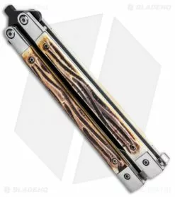 Bear & Son Bear Butterfly Knife W Stag Handle Damascus Blade (4″ Plain) 517D