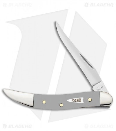 This Texas Toothpick model has a synthetic gray handle and a stainless steel blade. Add a classic pocket knife to your collection with the Small Texas Toothpick from Case Knives. This model has a clip point blade with a nail nick opener. Nickel silver bolsters and a case logo inlay finish off the collectible design.