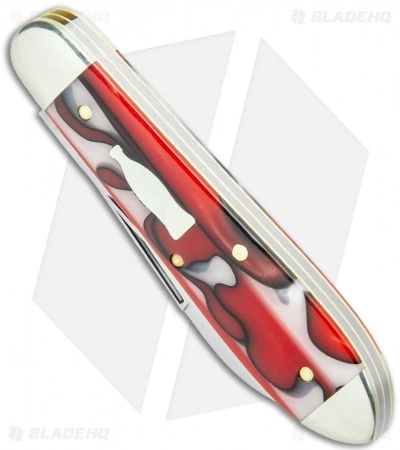 This Tidioute Cutlery Crown Lifter Boy’s Knife features a drop point blade and a bottle opener that doubles as a flat head screwdriver. The handle is fitted with “Dead Skunk” acrylic scales, a nickel silver soda bottle inlay, and nickel silver bolsters.