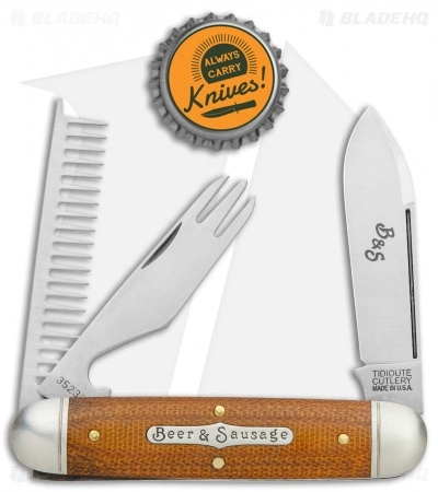 The Beer & Sausage knife from GEC is a unique traditional that has the real essentials for a day at the bar. It’s got a knife for slicing up a deliscious sausage or whatever bar chow you’ve got, a fork to put it in your mouth, a bottle opener to crack open cold ones, and a comb, just in case you encounter some attractive person.