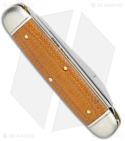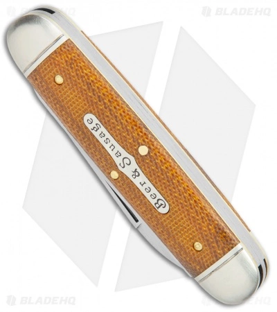 This Beer & Sausage knife has a natural canvas Micarta handle.