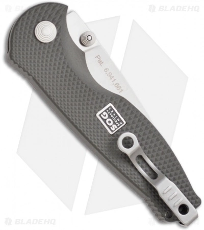 This SOG Flash I (SGFSA-97) knife has an AUS-8 stainless steel blade with a satin finish and partially serrated edge. The graphite anodized aluminum handle is durable and features a diamond non-slip texture.